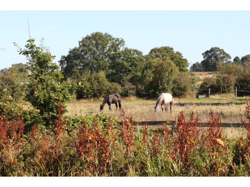 Emerging from under Longwood Bridge is a revelation and you immediately realize the difference between an old contour canal - the Daw End Branch Canal that you are now walking alongside – and the 'modern' Rushall Canal that had cut straight through the countryside for the last 2¾ miles. Green fields with bales of hay and grazing horses now decorate the view as the canal twists and turns with water that's crystal clear and full.