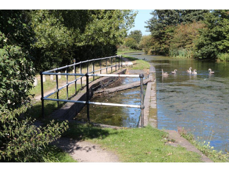 The Phoenix Lime Works (closed 1918) stood opposite these pubs and around the next corner there was the Winterley Lime Works. Still countryfied in a kind of BCN way, the canal takes on a slightly more urban feel and after Brawns Bridge there is an incongruous line of leylandii. Before too long you become hemmed in by factories on extensive industrial estates. One occupies the site of the former Linley Cement Works in whose limestone caverns the RAF chose to store bombs during the Second World War. The industrial landscape will continue with factories on both sides for over two miles. They are partially screened by trees as you go under a brutalist concrete pipe bridge and then get to the equally unlovely Hopley('s) Bridge. Following narrows marking the site of the former Tongues Meadow Bridge, there are playing fields providing a little breathing space before Aldridge Wharf Bridge.