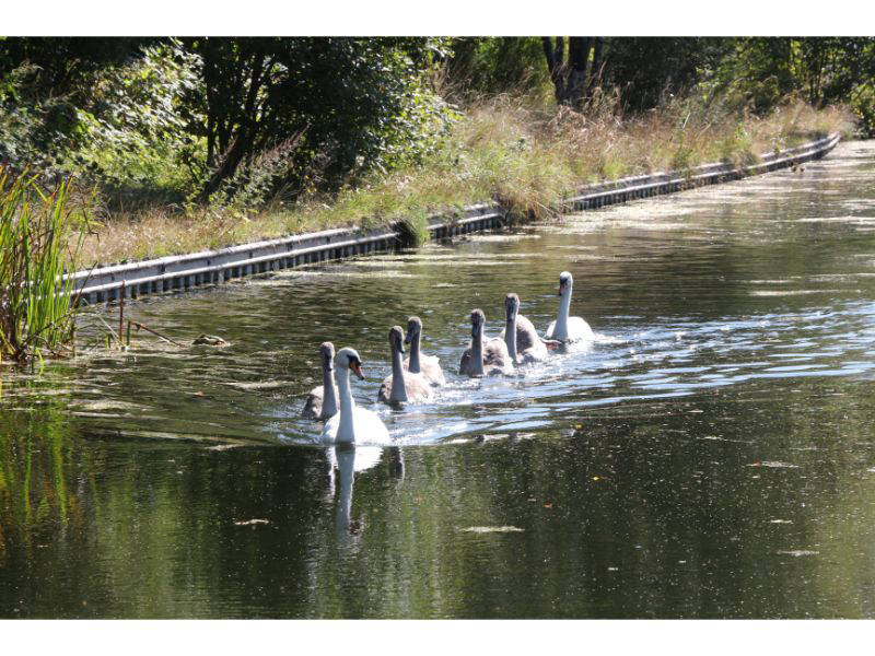 Disappearing under the M6 Viaduct bridge, happily the tow path is well made, but this does have the downside of also attracting speeding cyclists. Progress is swift and you are soon rewarded with countryside views following Biddleston Bridge. Willow-herb, ragwort and clover line the tow path, and in the autumn the hedgerows are full of hawthorn berries, blackberries, and black bryony. Cycle path 5 leaves at Hill Farm Bridge and the tow path, although perfectly walkable, is no longer gravelled. Motorway noise is still apparent but there are now ducks quacking among the discarded crisp packets. The pleasantness continues when reaching the first of nine Rushall Locks that will lift the canal from the 408ft Walsall level to the 473ft Wolverhampton level.