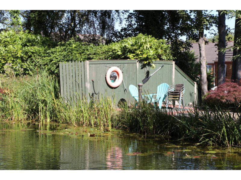 The initial locks are known as the ganzy seven because, possibly due to their exposed nature, the original boatmen found this item of clothing necessary to keep warm. Water levels are a recurring problem along the locks and sure enough below Lock 5 the pound is bone dry. More unusual is the complete set of clothes neatly stacked next to lock 4. Above lock 3 the water is covered by an odd green substance which continues unabated for a considerable distance and undisturbed by boats that are strangers in these parts. The local residents do take advantage of the canal however with chairs, tables and more elaborate leisure constructions.